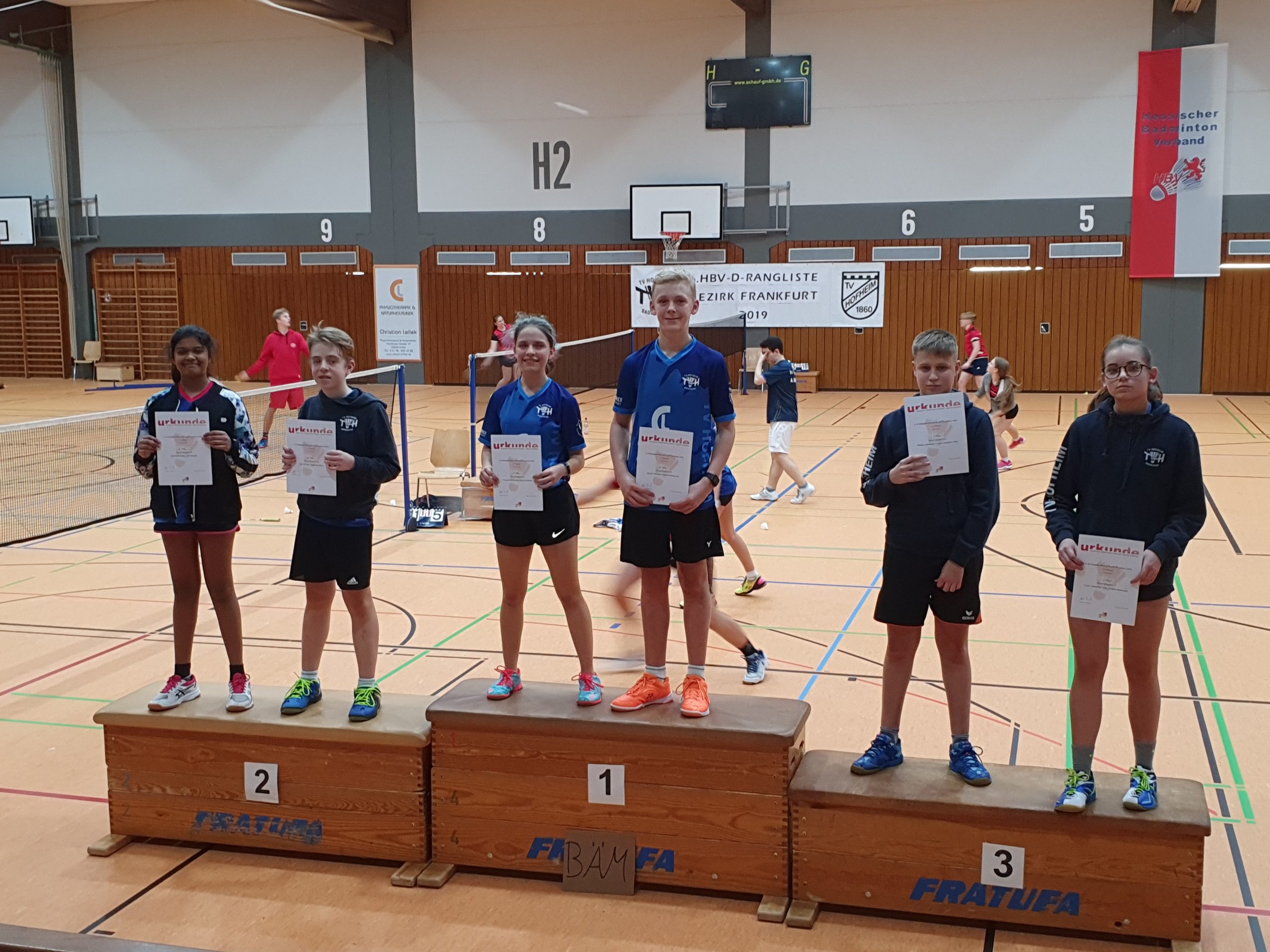 Mit der großen Unterstützung vieler freiwillger Helfer gelang dem TV Hofheim eine tolle Ausrichtung des bisher größten Badminton-Jugendturniers, das im Bezirk Frankfrurt je stattgefunden hat. Die Öffnung der Ranglistenturniere durch das neue Ranglistensystem hat dies auch mitbedingt, denn einige Spieler des Landesverbands Bayern und aus dem Bezirk Darmstadt bereicherten das regionale Teilnehmerfeld. Über zwei volle Tage in einer bis an die Kapazitätsgrenze gefüllten Halle waren 324 Akteure auf 15 Spielfeldern unterwegs und sehr viele Zuschauer begleiteten das Event.