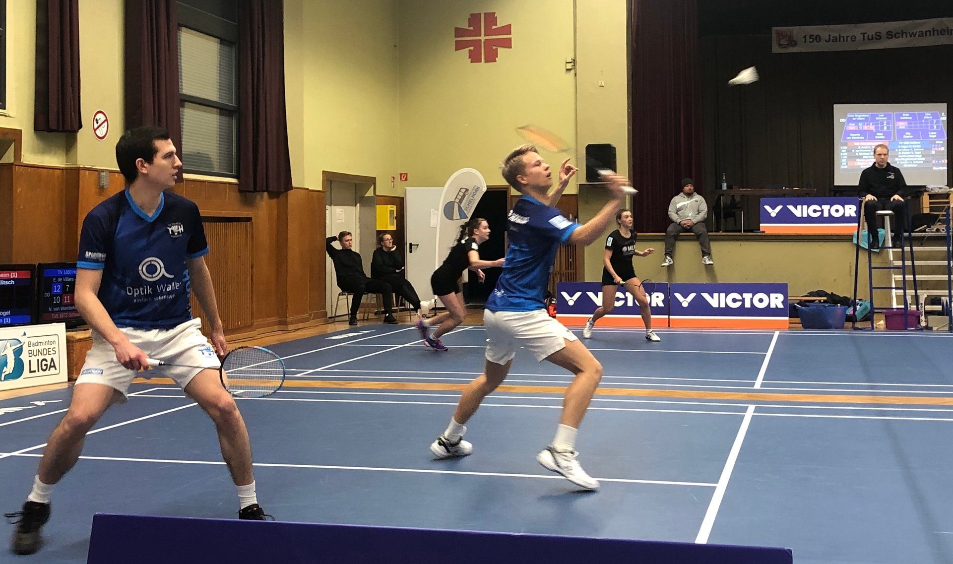 Am Sonntag stand dann das Derby gegen Tabellenschlusslicht Schwanheim an. Hier verloren Elmé de Villiers und Lea Schirmer diesmal leider ihr Damendoppel gegen stark aufspielende Schwanheimerinnen. Parallel dazu gewannen aber David Schäfer und Karl Nagel souverän das 1. Herrendoppel. Lukas Vogel und Nils Discher zeigten Nervenstärke gegen die Schwanheimer und gewannen das äußerst spannende zweite Herrendoppel im fünften Satz mit 12:10. Im Anschluss erhöhte Karl Nagel dann mit einem deutlichen Sieg im Einzel auf 3:1. Der Vorsprung schmolz jedoch sogleich dahin, als Elmé im Dameneinzel gegen den starken Neuzugang der Schwanheimer aus Frankreich verlor und das Mixed mit David Schäfer und Lea Schirmer unglücklich und ganz knapp (11-8,9-11,6-11,12-10,11-9), wie schon am Vortag gegen Dortelweil, verlor. Nun musste Nils Discher in seinem Einzel erneut Nervenstärke zeigen, um zwei weitere wichtige Punkte gegen den Abstieg mit nach Hofheim zu bringen. In einem sehr umkämpften Match gelang es ihm auch in 5 Sätzen.