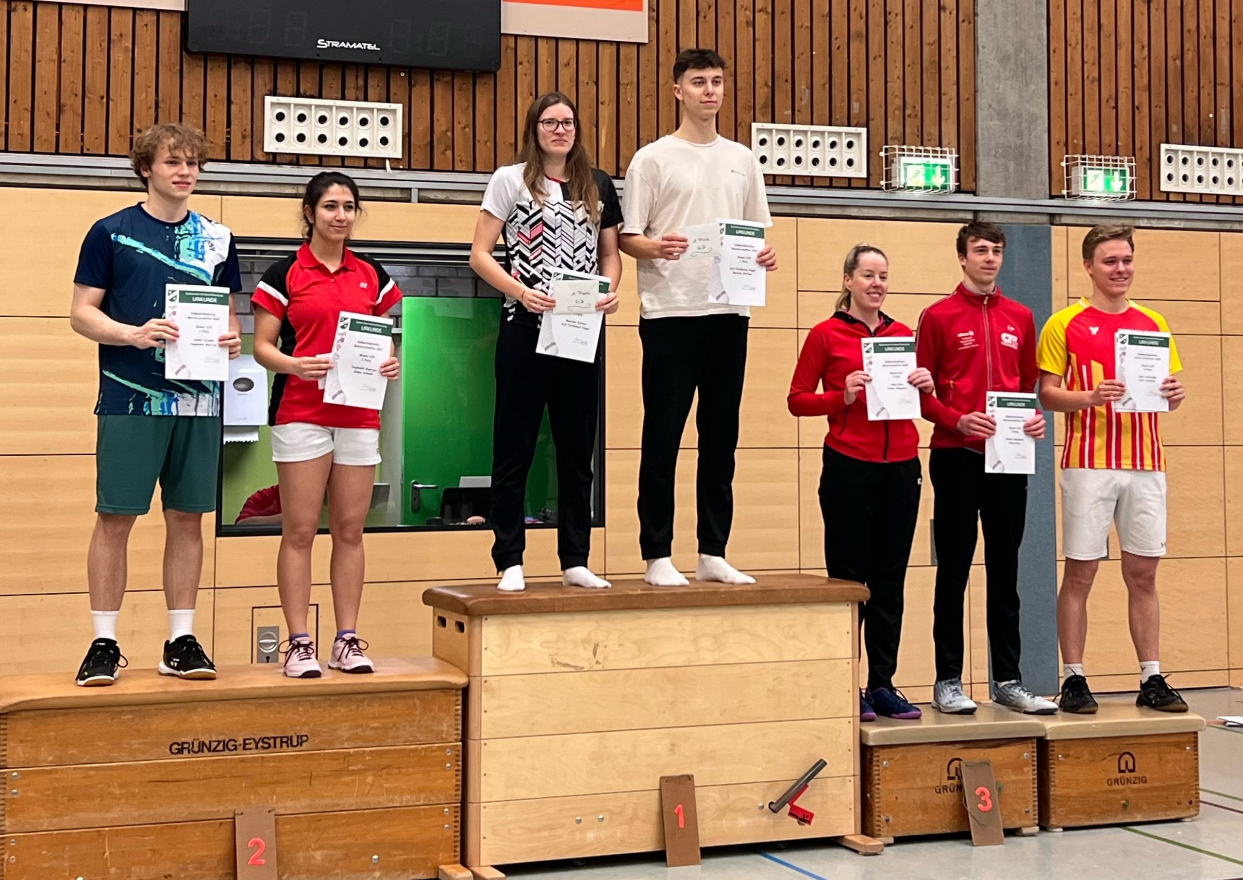 Bei den gut besetzten Südwestdeutschen Meisterschaften in Plaidt war der TV Hofheim mit Nils Schmidt, Karl Nagel und Mareike Bittner zwar zahlenmäßig zwar nicht so stark vertreten (Saurya Singh und Zhen Huang mussten ihre Meldung leider kurzfristig zurückziehen), dafür performten diese drei Spieler*innen aber ausgezeichnet, denn alle drei konnten Podestplätze erringen und sich damit für die Deutschen Meisterschaften qualifizieren.