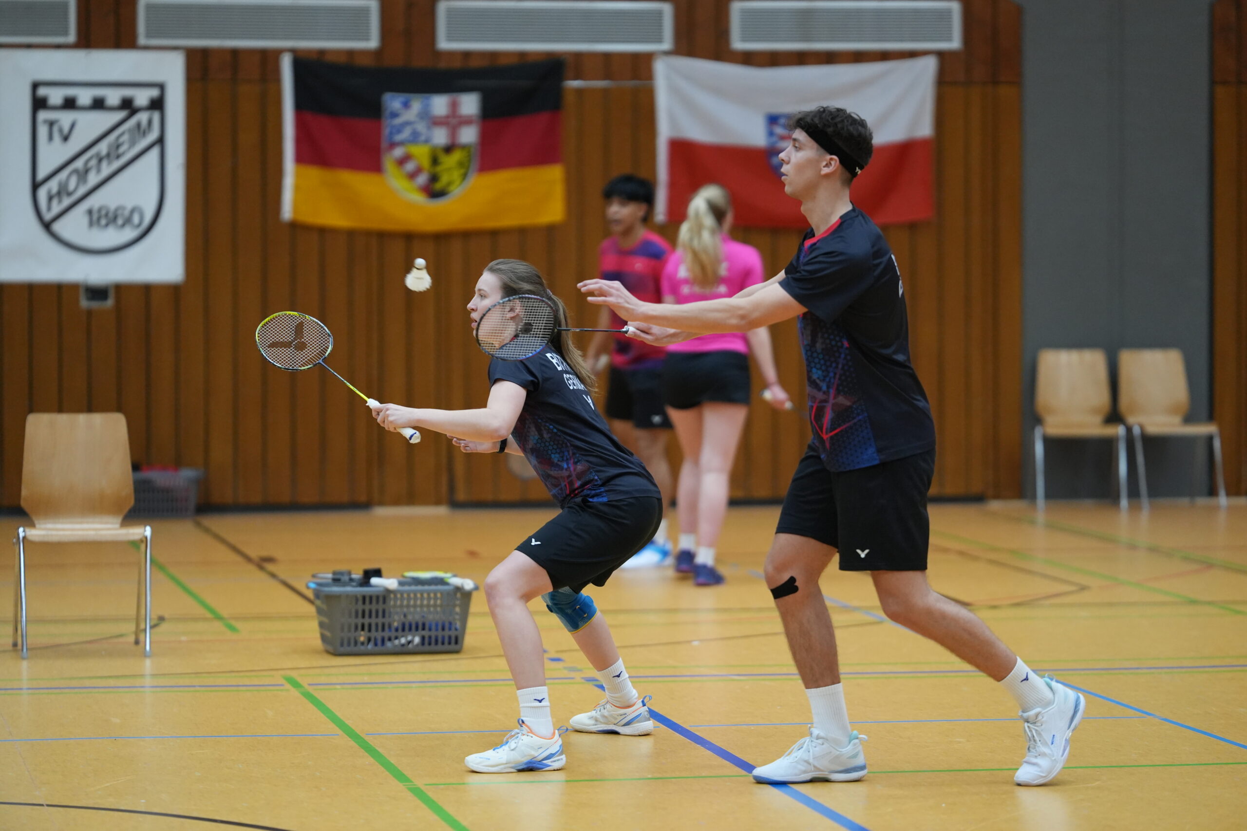 Der Samstag begann mit der Mixeddisziplin. Hier spielten sich die an Position 1 notierten Karl Nagel und Mareike Bittner vom Ausrichter TV Hofheim bis ins Finale vor. Die Hofheimer zeigten dabei souveräne Vorstellungen, und mussten lediglich im Viertelfinale gegen Pinnen/Mund vom BC Remagen einen Satz abgeben. Im Finale am Sonntag trafen die Hofheimer auf die Fischbacher Matti-Lukka Bahro und Louisa Marburger, die wiederum mit einem knappen Zweisatzsieg über die an Position 2 gesetzten Danial Marzuan/Alena Krax aus Dortelweil und Maintal das Finale erreicht hatten. In einem engen Zweisatzspiel setzte sich die schnellkräftige Hofheimer Paarung durch und ergänzte ihre Titelsammlung somit um ihrem ersten gemeinsamen Titel bei südwestdeutschen Meisterschaften.