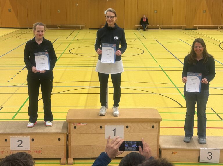 Nach einer knappen Halbfinalniederlage in drei Sätzen gegen Thomas Schmidt wurde Andreas Umscheid Dritter im Einzel O50 und dritte Plätze holten auch noch Corinna Sültemeyer im Einzel O50 und Janine Frunzi im Doppel O50.