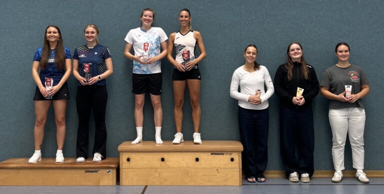 Mareike erspielte sich zusammen mit Annika Horbach (Refrath) Platz 1 im Doppel, mit Christian Dumler (Dortelweil) wurde sie Dritte im Mixed und im Einzel verpasste sie als Fünfte einen Podestplatz nur ganz knapp.