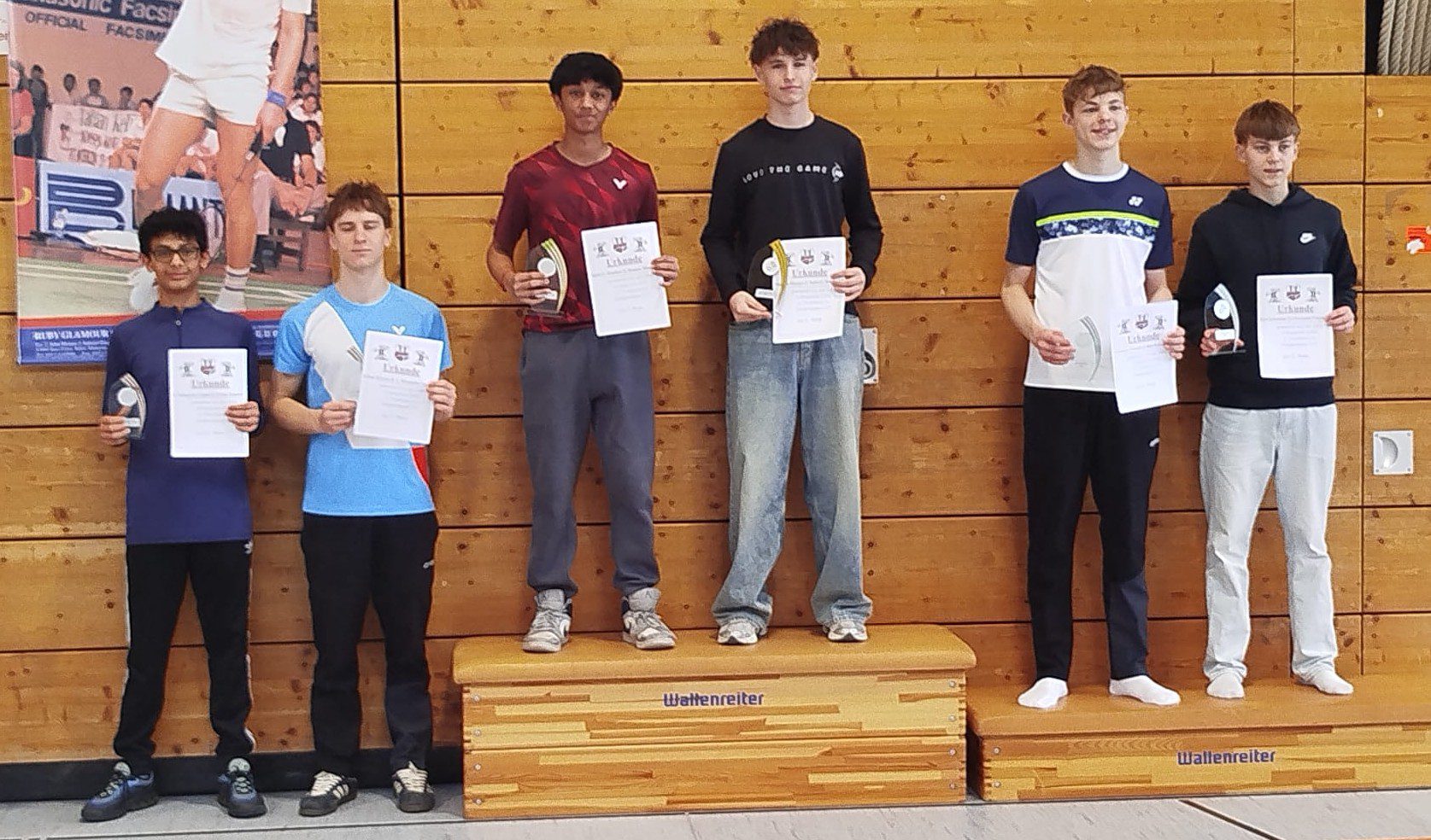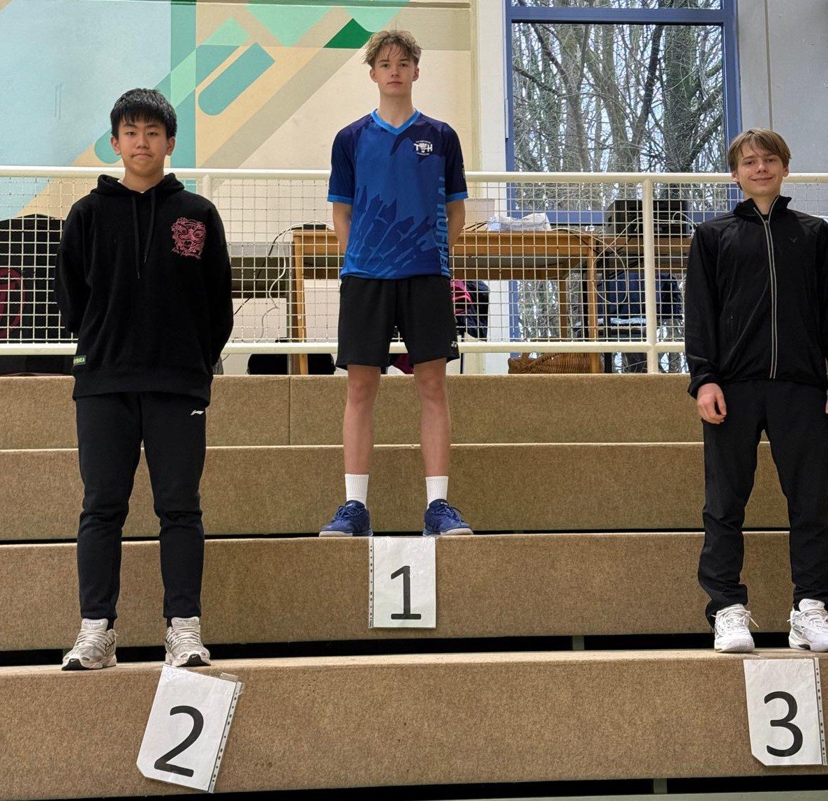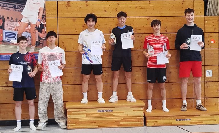 Gleich zwei Hofheimer Podestplätze gab es im Doppel U19. Zhen Huang (mit Lovis Deters, Niederhöchstadt) wurde Erster und Adrien Strohhecker (mit Fynn Alfsmann, Dortelweil) belegte Platz zwei. Zhen, mit Platz vier im Mixed und Adrien, mit Platz fünf im Einzel verpassten einen weiteren Podestplatz nur knapp.