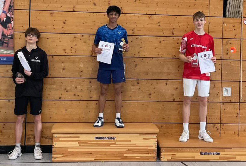 Sathvik Shankar (U17) holte den ersten Platz im Einzel ohne Satzverlust, siegte auch im Doppel (mit Hannes Merget, Anspach) und wurde im Mixed (mit Swara Santosh Krishna, Schwanheim) Vierter.