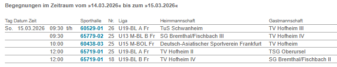 15MrzAlle TageLigaspiele TVH-MannschaftenHBV-Ligen